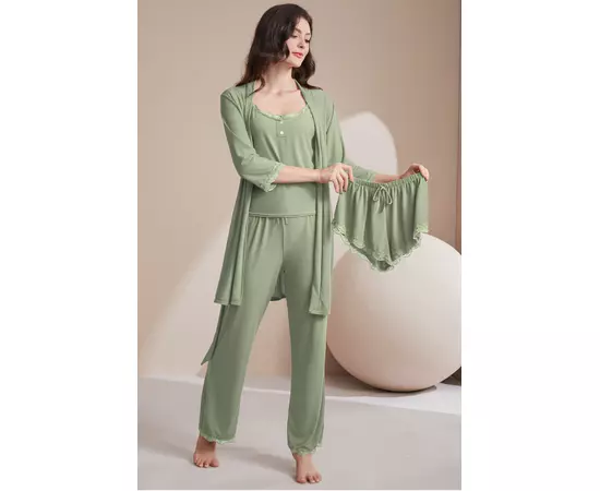 Set Pijama de Dama 4 Piese, Verde - ANI156