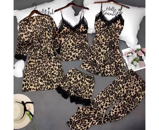 Set Pijama De Dama 5 Piese Leopard Din Satin