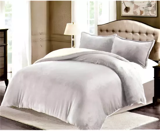 Set Pilota Cu Blanita si 2 Fete de Perna, Catifea, Gri Deschis- FR216