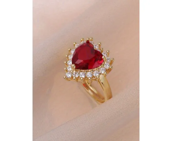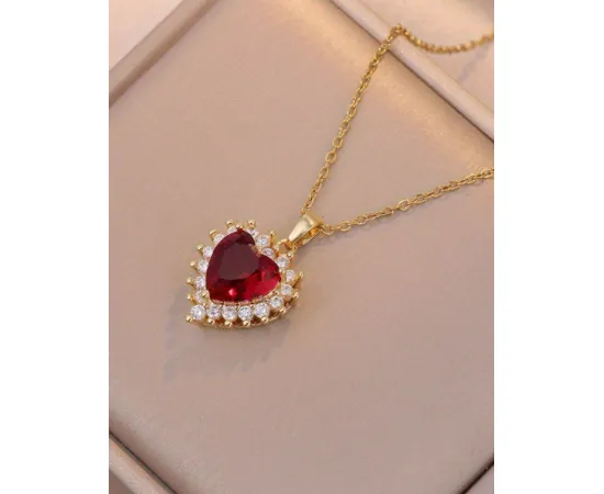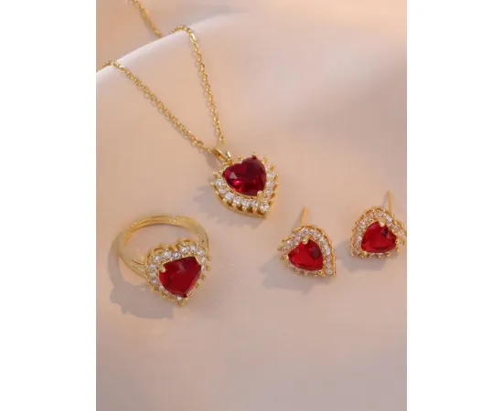 Set Red Heart, Colier, Cercei si Inel, Rosu si Argintiu - 266723
