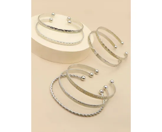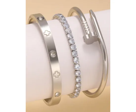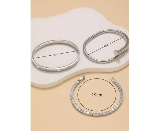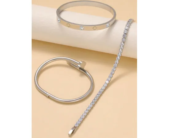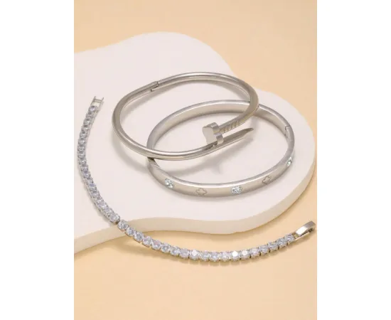 Set Trivana, 3 Bratari din Zirconiu si Otel Inoxidabil, Stil Retro, Argintiu - 813177