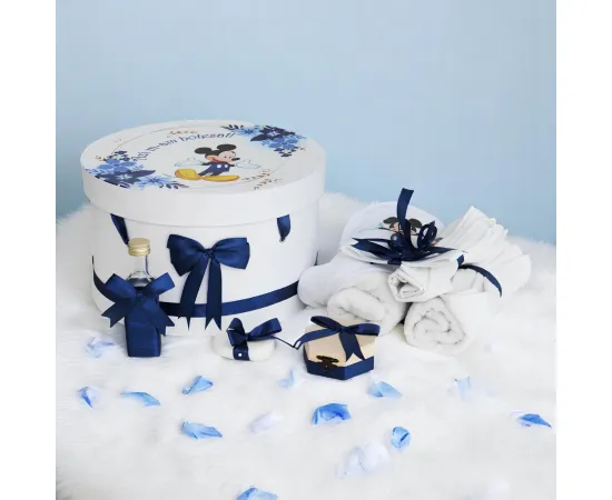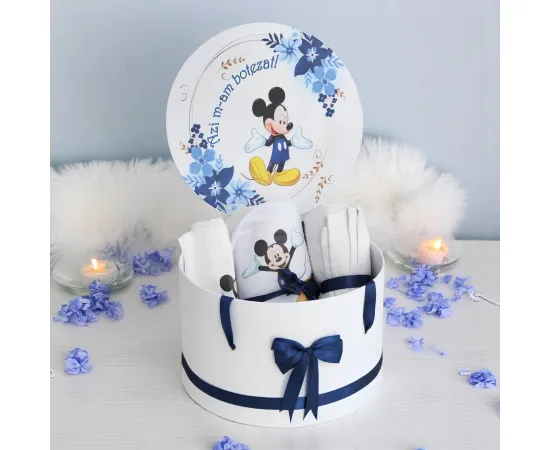 Trusou Botez cu 8 Piese Imprimat, Mickey Mouse, Culoare Bleumarin - TB212