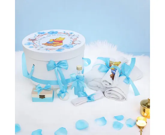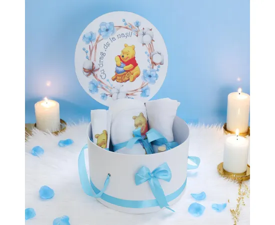 Trusou Botez cu 8 Piese Imprimat, Winnie the Pooh, Culoare Turcoaz - TB220