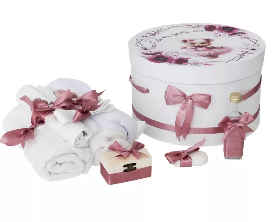 - Prosop pentru bebelus – din material moale deosebit de absorbant,din bumbac de cea mai buna calitate. Prosopul este decorat cu dantela si cu diferite mesaje. Dimensiunea prosopului este de 80 cm x 80 cm, suficient pentru a sterge bebelusul si pentru a-l tine infasurat pe parcursul ceremoniei.