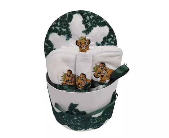 - Prosop pentru bebelus – din material moale deosebit de absorbant,din bumbac de cea mai buna calitate. Prosopul este decorat cu dantela si cu diferite mesaje. Dimensiunea prosopului este de 80 cm x 80 cm, suficient pentru a sterge bebelusul si pentru a-l tine infasurat pe parcursul ceremoniei.
