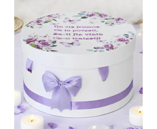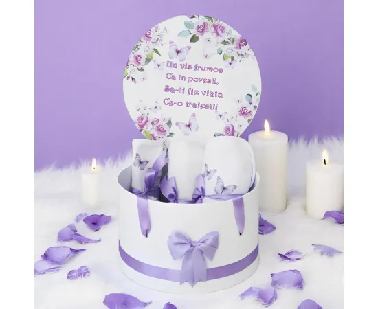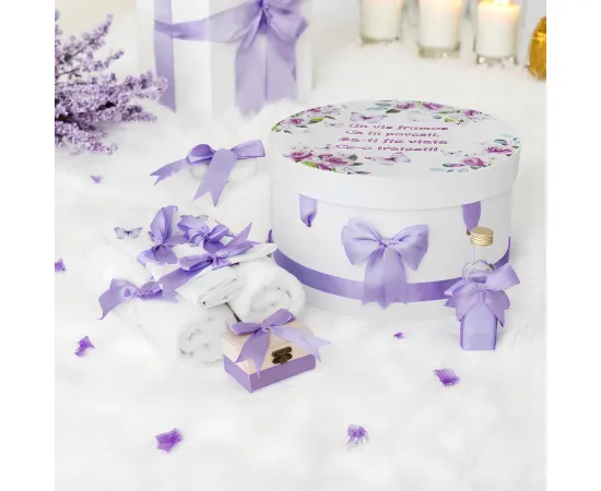 Trusou Botez cu 8 Piese Imprimat, Poezie, Culoare Violet - TB210