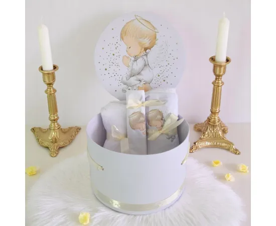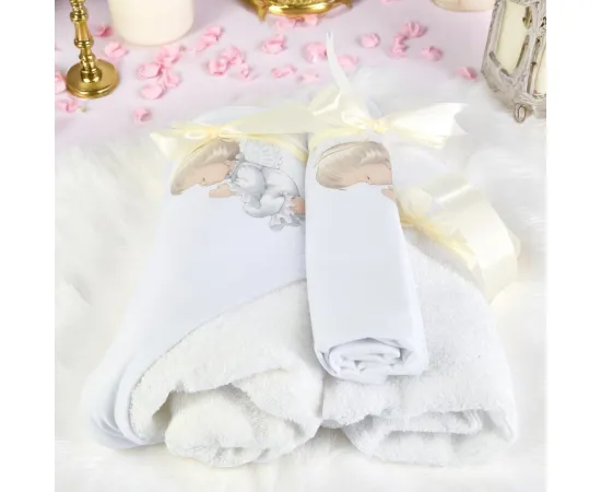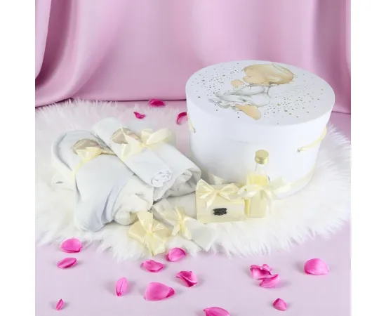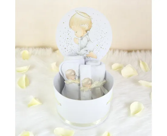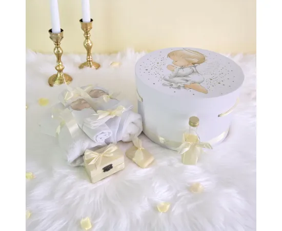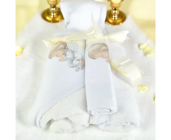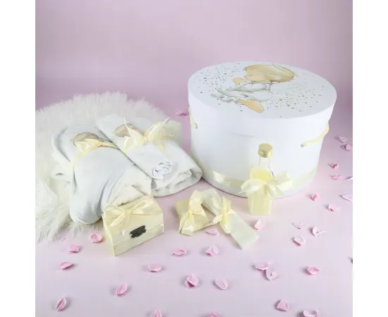Trusou Botez cu 8 Piese Imprimat, Ingeras, Culoare Unt - BAB167
