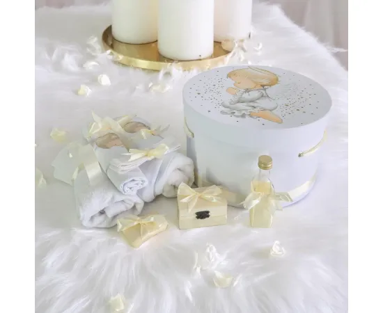 Deoarece botezul este un eveniment important pentru parinti si nasi, venim in ajutor cu un set care contine toate cele necesare pentru crestinarea bebelusului