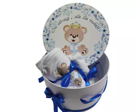 - Prosop pentru bebelus – din material moale deosebit de absorbant,din bumbac de cea mai buna calitate. Prosopul este decorat cu dantela si cu diferite mesaje. Dimensiunea prosopului este de 80 cm x 80 cm, suficient pentru a sterge bebelusul si pentru a-l tine infasurat pe parcursul ceremoniei.
