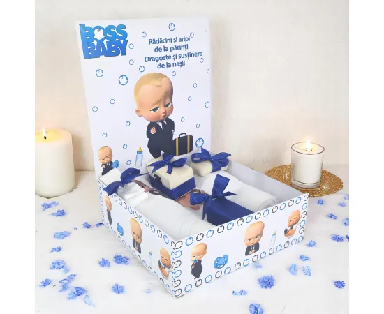 Trusou Botez cu 8 Piese, Boss Baby, Culoare Albastru - TB262
