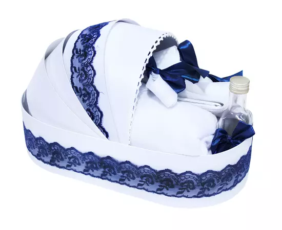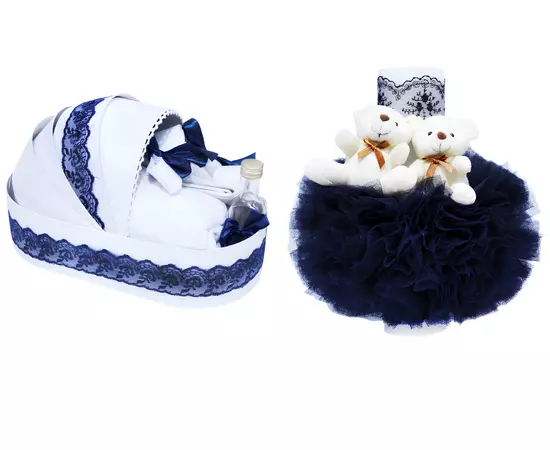 Set Trusou Botez cu Lumarare, 7 Piese, "Azi m-am crestinat", Alb-Bleumarin - TBL22