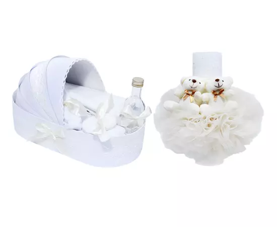 Set Trusou Botez cu Lumarare, 7 Piese, "Azi m-am crestinat", Alb-Ivoire - TBL21