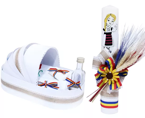 Set Trusou Botez cu Lumarare, 7 Piese, Model Traditional - TBL23
