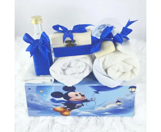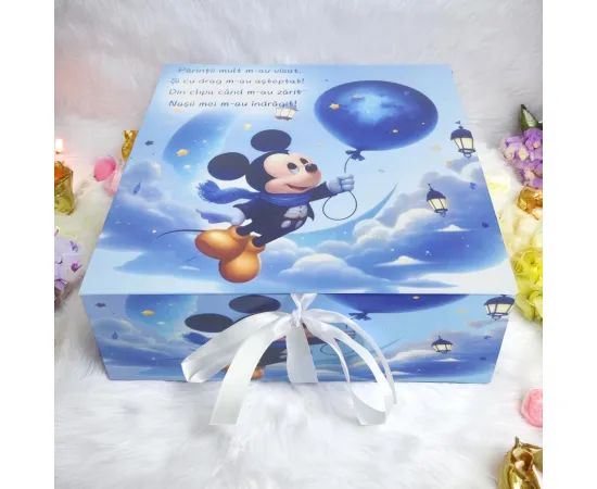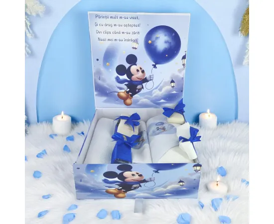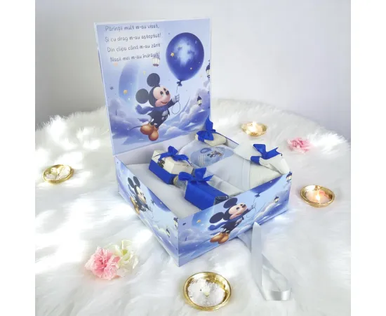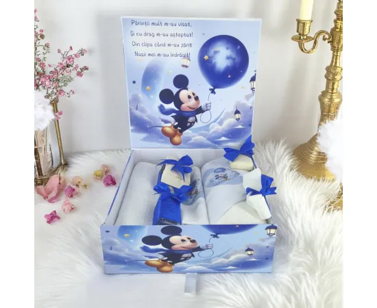 Trusou Botez cu 8 Piese, Mikey Mouse cu Balon, Culoare Albastru Regal - TB275