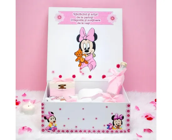 Trusou Botez cu 8 Piese, Baby Minnie, Culoare Roz Deschis - TB26