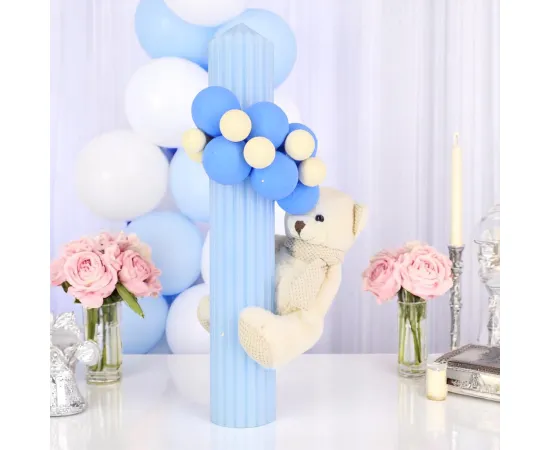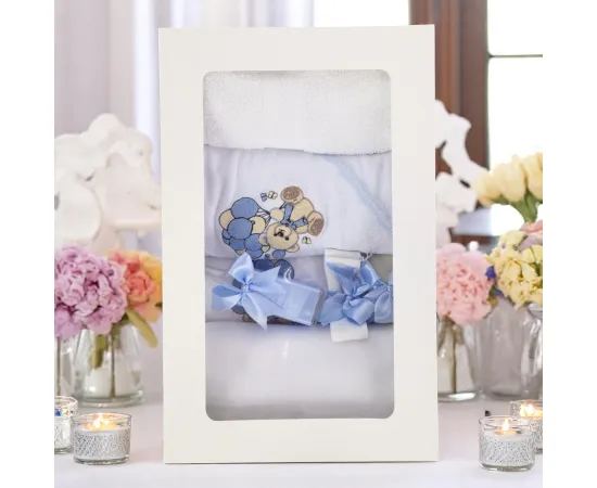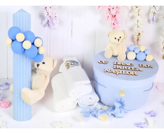 Set Trusou Botez si Lumanare, 9 Piese, cu Ursulet, Albastru Deschis din Catifea - TB255