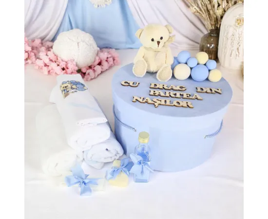 Setul pentru Botez contine Cutia din catifea cu toate piesele trusoului si Lumanarea - set minunat și grijuliu creat special pentru a marca momentul unic al botezului unui copil. Fiecare element al acestui trusou este atent selectat pentru a reflecta bucuria, caldura și binecuvântarea acestui eveniment sacru. Iată o posibilă descriere: