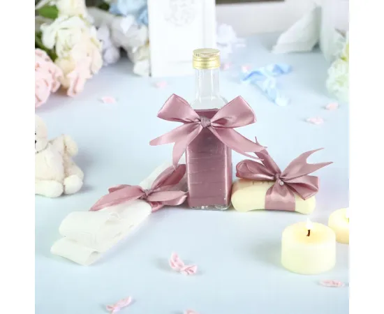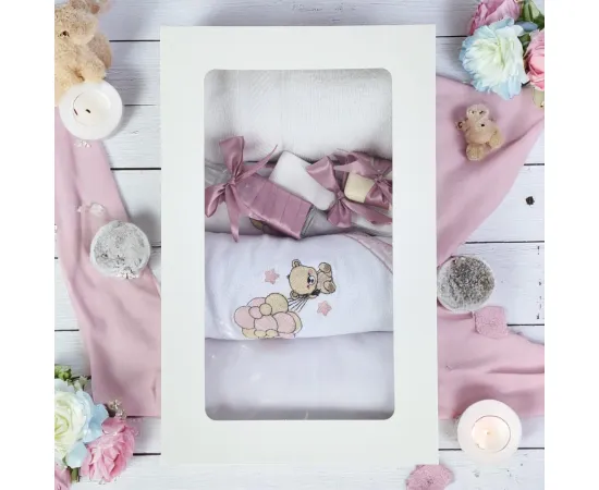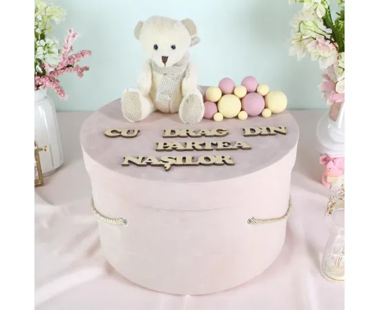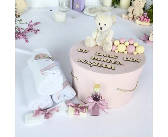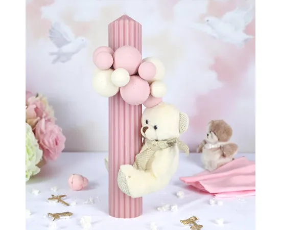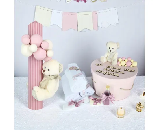Set Trusou Botez si Lumanare, 9 Piese, cu Ursulet, Roz Pudra din Catifea - TB256