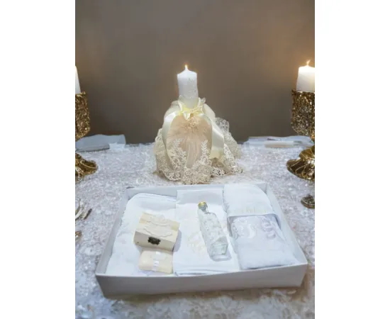 Set Trusou Botez si Lumanare, Ivory - TB317
