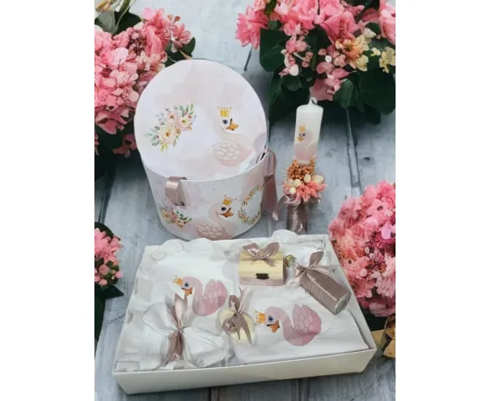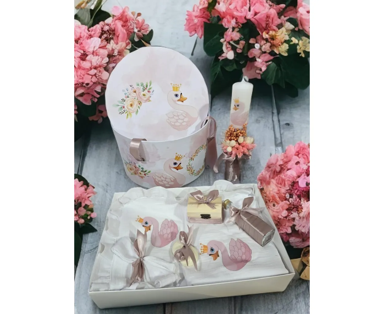 Set Trusou Botez si Lumanare, Lebada, din Muselina - TB320