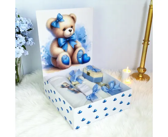 Trusou Botez cu 8 Piese, Ursulet Plus, Culoare Albastru Deschis - TB261