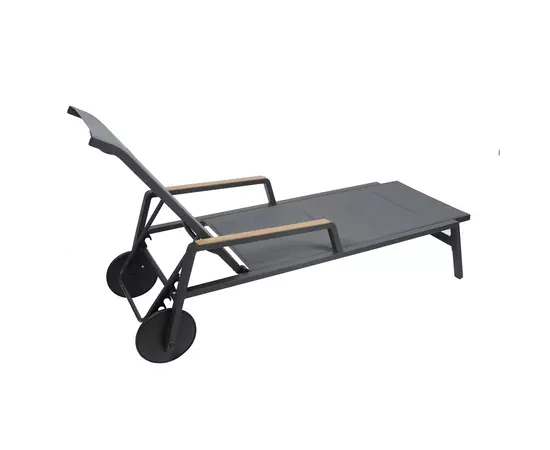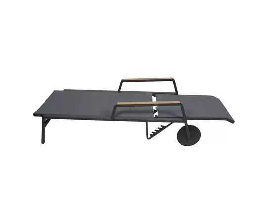 Pentru a putea fi manevrat si mutat mai usor, sezlongul este prevazut cu 2 roti de cauciuc.