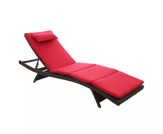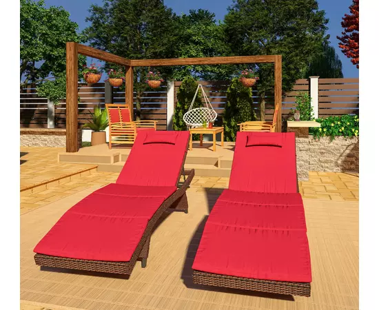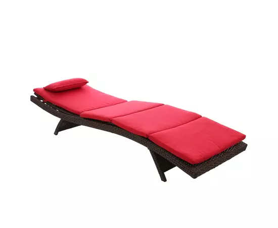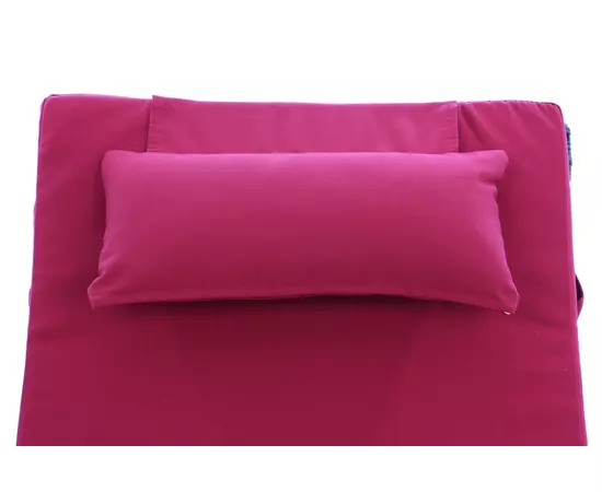Sezlongul este insotit de o saltea confectionata din poliester 100%, prevazuta cu tetiera. Salteaua are o grosime de 3 cm si culoarea rosie.