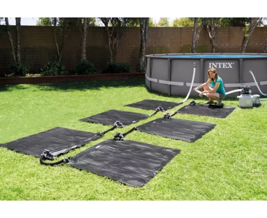 Are o suprafata de 1 m² (1m x 1m) prin care se absorb razele solare si astfel se incalzeste apa. Sistemul are inclus si 2 furtunuri cu diametrul de 32 mm, respectiv 2 adaptori pentru furtunurile cu diametrul de 38 mm.
