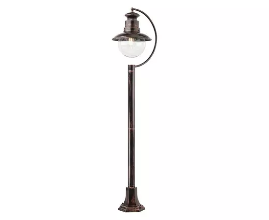 Este un corp de iluminat pentru exterior realizat din aluminiu turnat sub presiune si metal vopsit in camp electrostatic negru cu patina cupru, iar dispersorul este realizat din sticla transparenta.