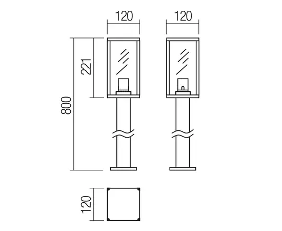 Stalpul exterior este realizat pe urmatoarele dimensiuni: 120 x 800 x 120 mm (latime x inaltime x adancime).
