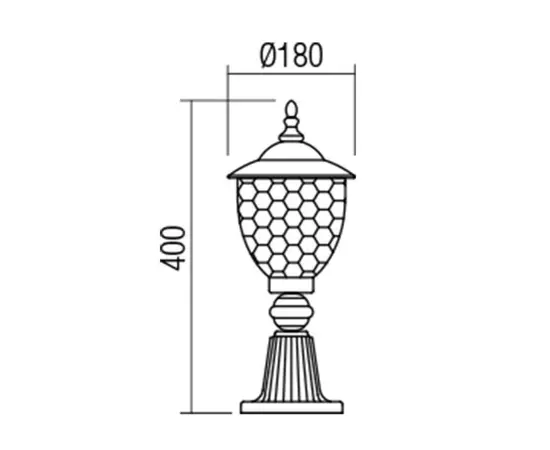 Corpul de iluminat este construit pe dimensiunile: 400 x 180 mm (inaltime x diametru).