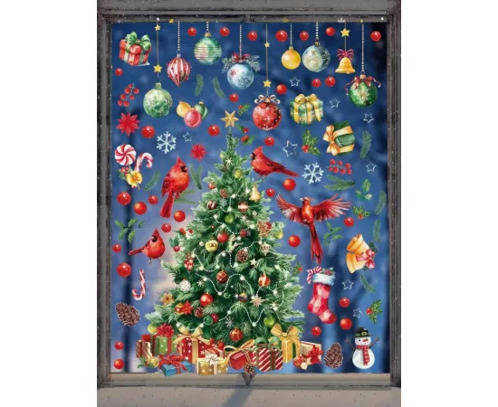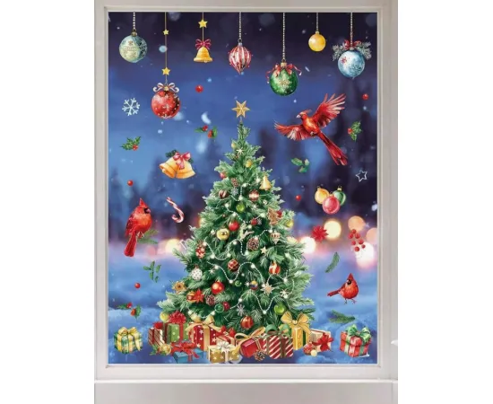 Sticker/Autocolant Craciun Brad cu Pasari, Globuri si Cadouri - 139337
