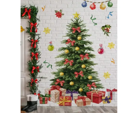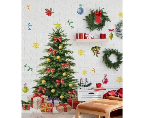 Sticker/Autocolant Craciun Brad si Cadouri 70x90cm - 695576