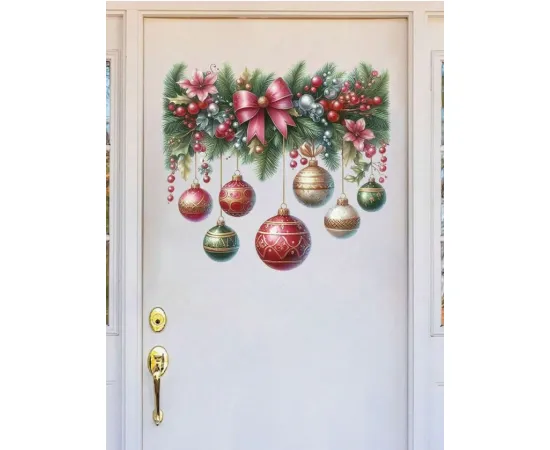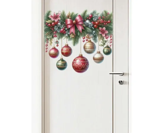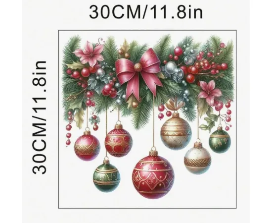 Sticker/Autocolant Craciun cu Globuri si Brad 30x30cm - 051759