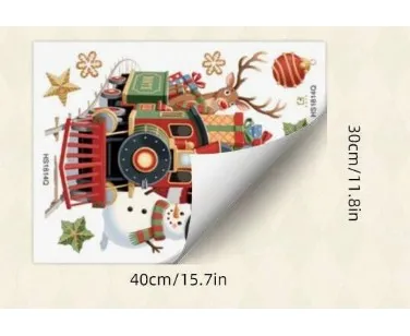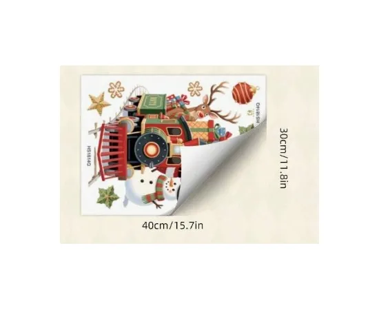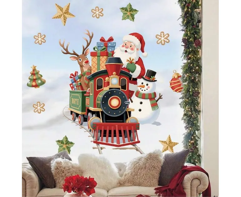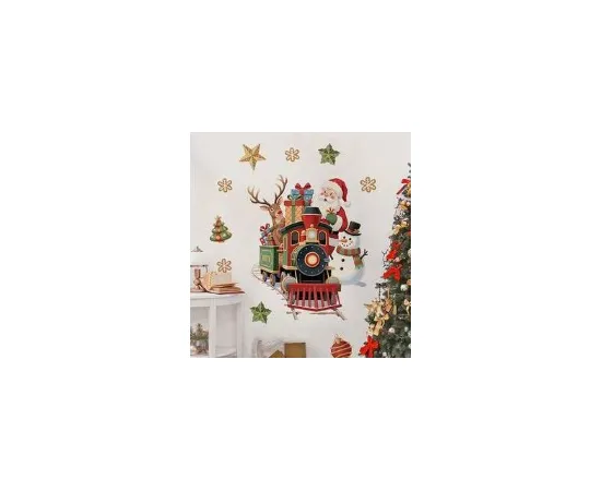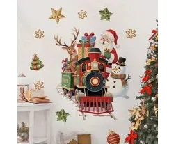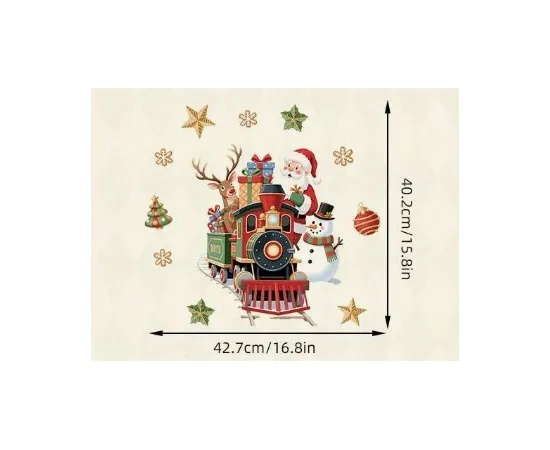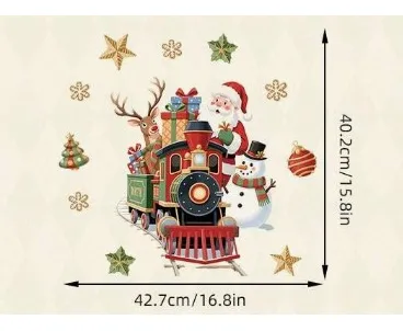 Sticker/Autocolant Craciun cu Mos Craciun si Trenuletul 40x42cm - 137281