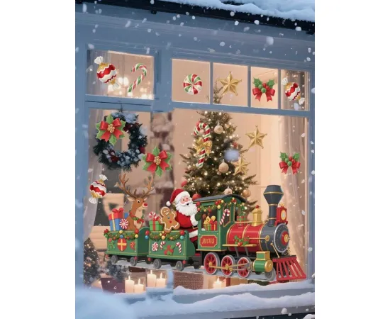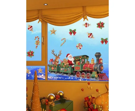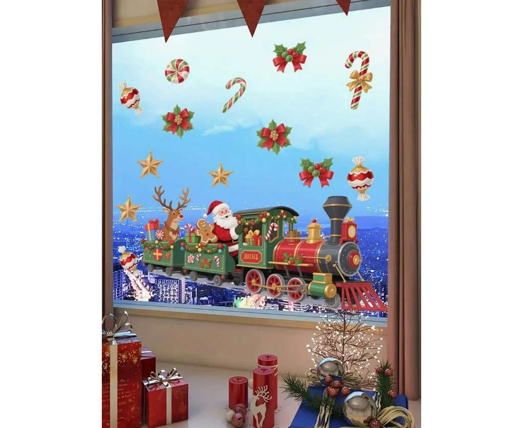 Sticker/Autocolant Craciun cu Trenul lui Mos Craciu 30x60cm - 200909