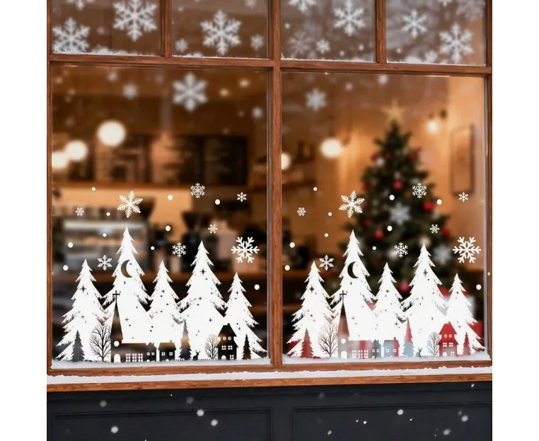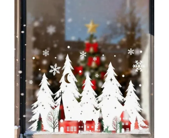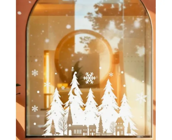 Sticker/Autocolant Craciun pentru geam sau oglinda Brazi Albi 30x45cm - 695576