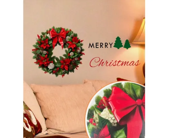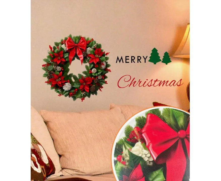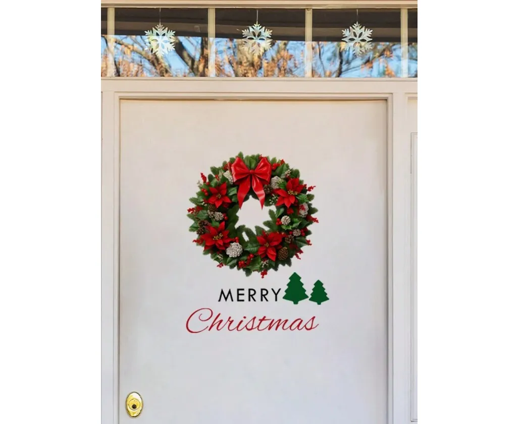 Sticker/Autocolant Craciun pentru usa sau perete - Coroana cu Panglici 30x40cm