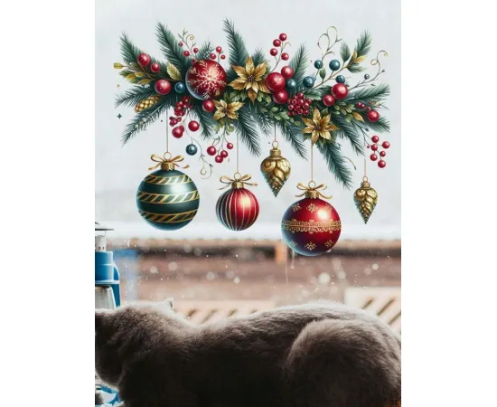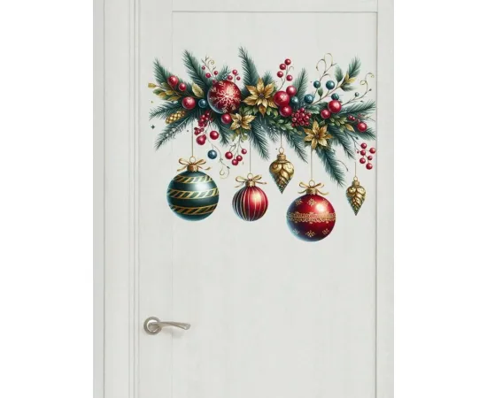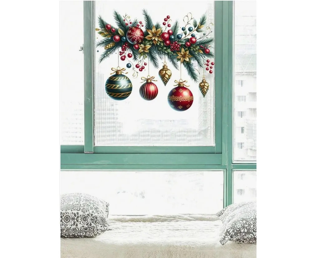 Sticker/Autocolant Craciun Pin cu Globuri 25x30cm - 051759