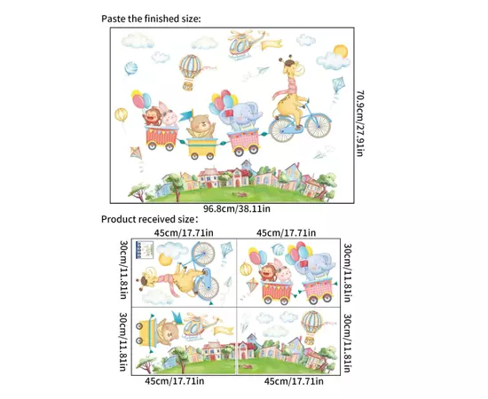 Sticker Perete Autocolant Animale si Baloane 97x71cm - 80245