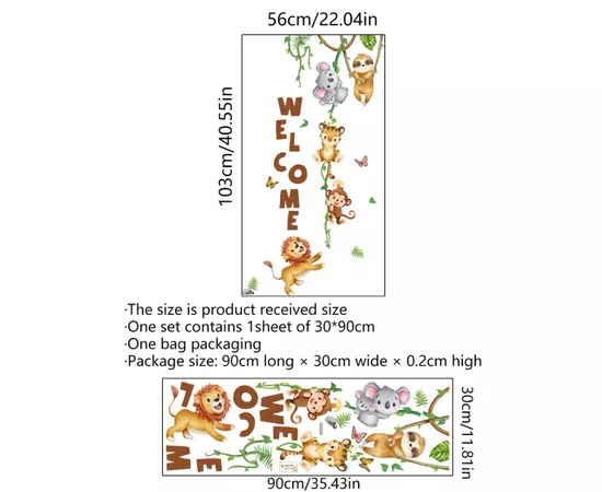 Sticker Perete Autocolant Animale si Welcome 30x90cm - 43668