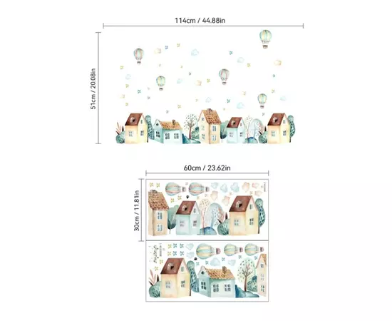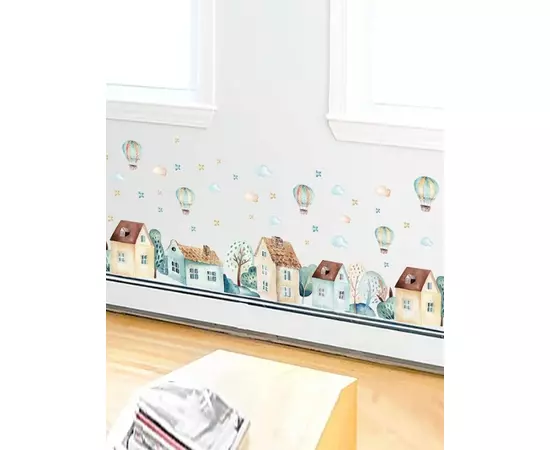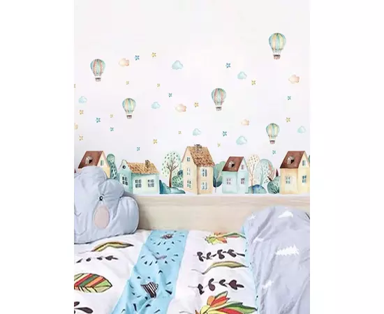 Sticker Perete Autocolant Balon cu Aer Cald si Case - 11275