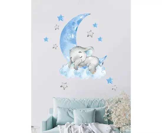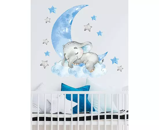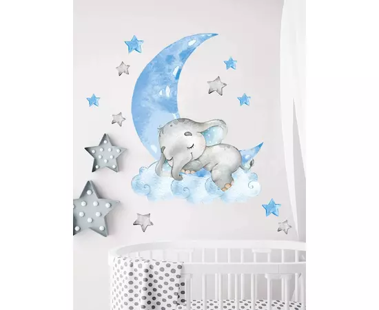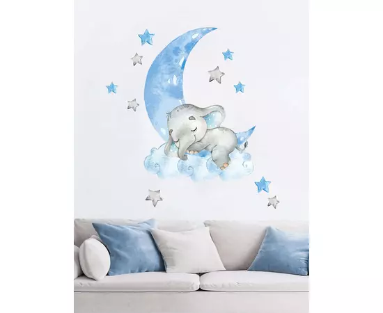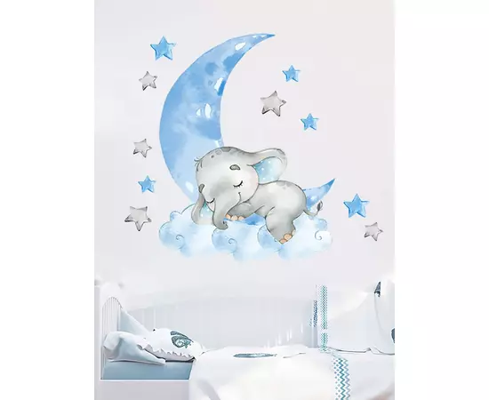 Sticker Perete Autocolant Bebe Elefant Doarme pe Luna
