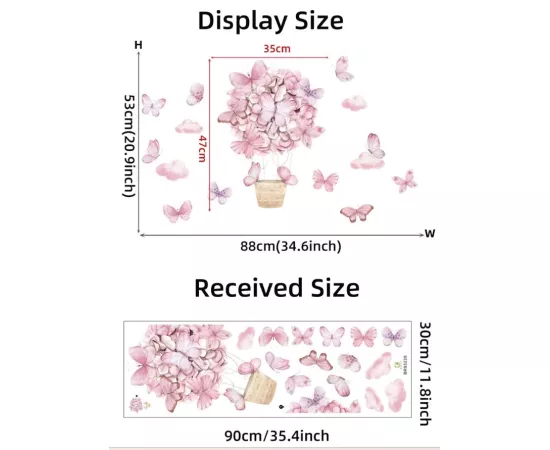 Sticker Perete Autocolant Cos Fluturasi Roz - 53 x 88 cm