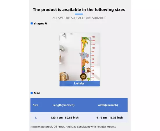 Sticker Perete Autocolant cu Centimetru pentru Copii - Animale - 977273