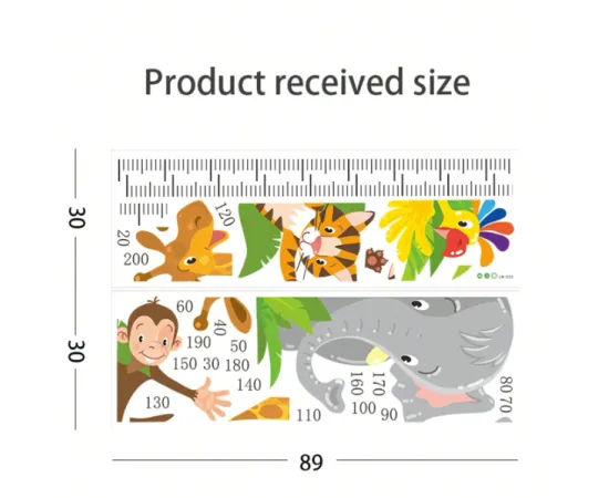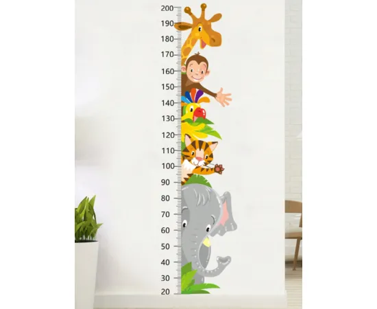Sticker Perete Autocolant cu Centimetru pentru Copii - Animale din Jungla - 864930