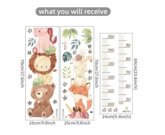 Sticker Perete Autocolant cu Centimetru pentru Copii -Animalute