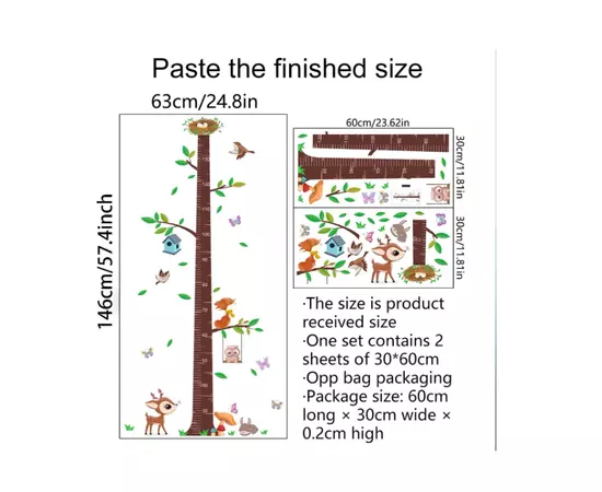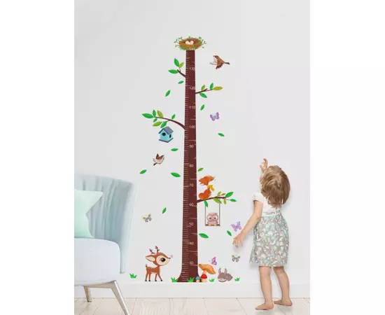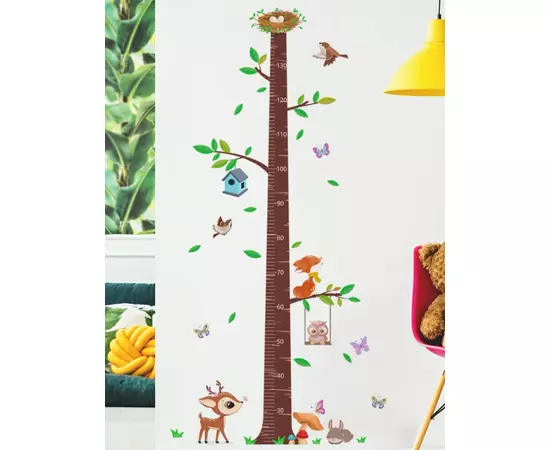 Sticker Perete Autocolant cu Centimetru pentru Copii -Copac Si Pasari