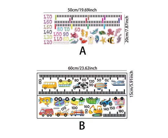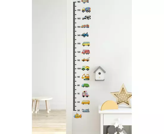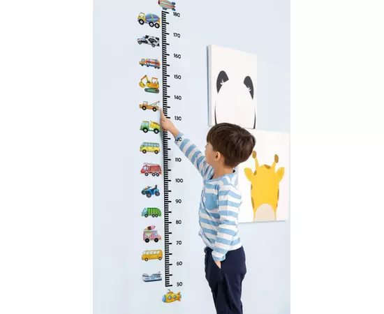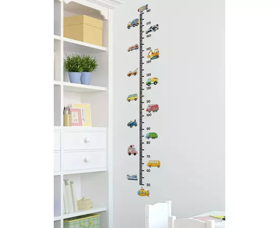 Sticker Perete Autocolant cu Centimetru pentru Copii cu Masinute - 91669B