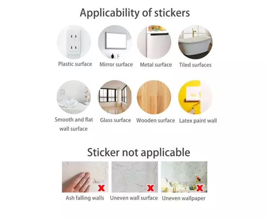 Cu ajutorul imaginației, poți combina mai multe stickere de perete și îți poți crea propria poveste! Potrivite pentru orice camera din casa ta, poți alege un sticker de perete si sa decorezi in mod ingenios. Alege stickerele care te reprezintă din colecția noastră variata si oferă un nou aspect casei tale! Stickere de perete sunt concepute pentru a fi utilizate pe suprafețe netede si uscate.